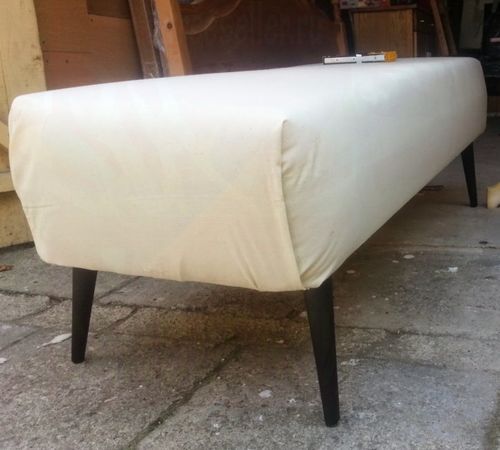 Прежде, чем обтянуть диван обивочной тканью, стоит сначала сделать еще один чехол. Для него послужит однотонная ткань, ее главная задача - скрепить все элементы начинки вместе.