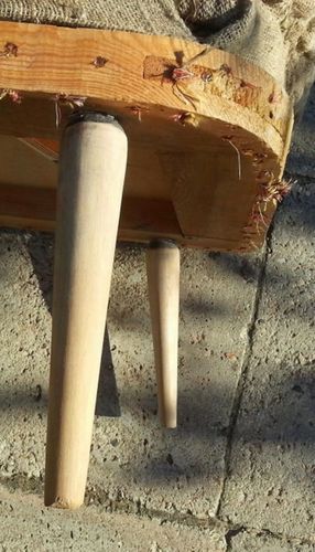Очищенные, зашкуренные тонкой наждачкой или шлифовальным инструментом ножки, покройте заново. Средств для обработки древесины на рынке очень много, выбирайте то, что вам больше нравится.