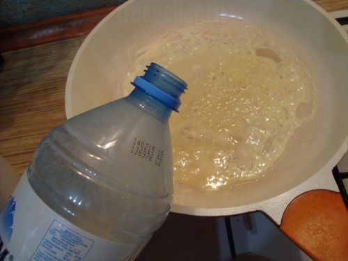 Все ингредиент взбиваются в бутылки до растворения комочков муки. Затем выливайте тесто прямо из бутылки в разогретую сковородку и выпекайте блины.