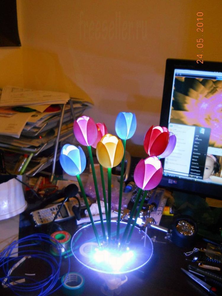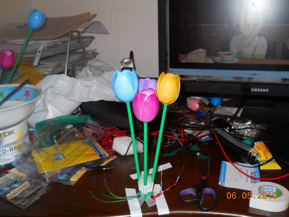 Источник информации: http://www.instructables.com/id/Glowing-Plastic-Spoon-Tulips/
