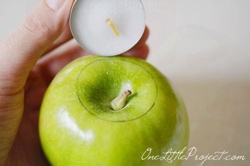 Источник информации: http://onelittleproject.com/fresh-apple-tea-lights/