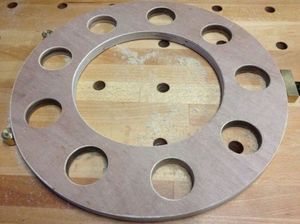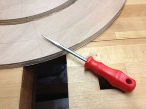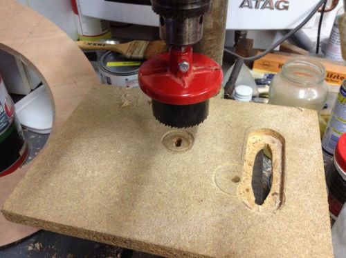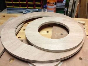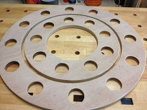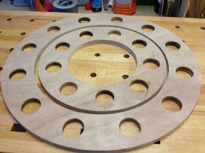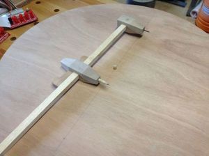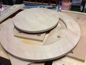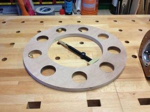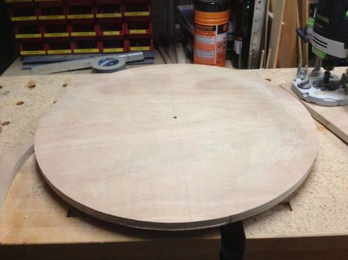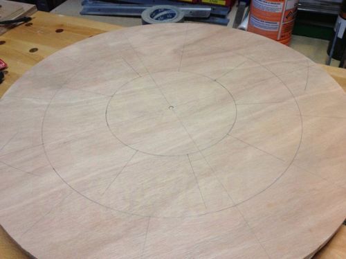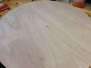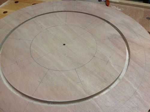 Измеряем центр круга, рисуем линию определяющую центр. В середине нужно проделать отверстие. Круг вырезается при помощи электрического лобзика.