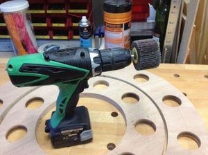 Первым делом нужно отшлифовать места для подсвечников. Это нужно делать шлифовальной машинкой. Края подсвечника шлифуем наждачной бумагой. Во время обработки лучше чтобы кольца находились не на столе, потому что он будет в царапинах, а на чем-нибудь мягком, это может быть тонкий старый ненужный плед или одеяло.