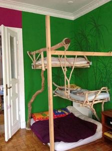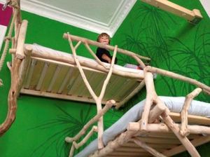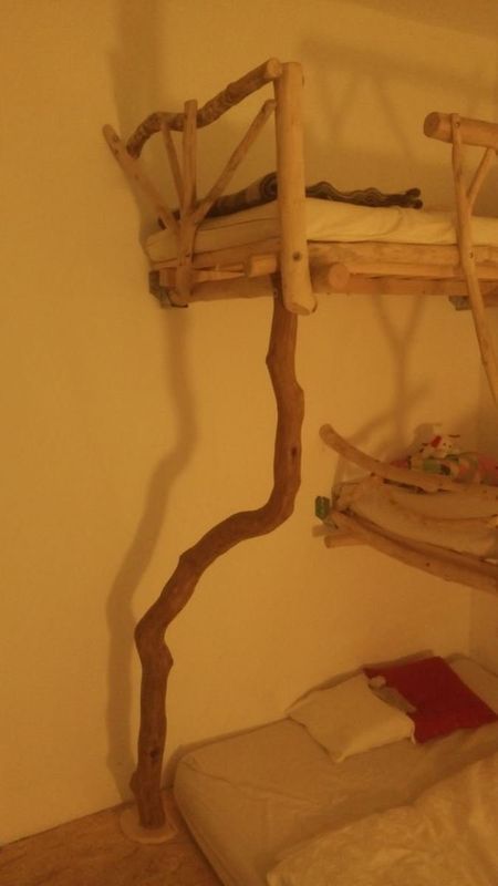 Наблюдая за тем, как дети играют на кровати, можно ее немного модернизировать. Где удобно ставить руку, где торчит лишняя ветка. Возможно, малышу понадобится лестница. Прелесть эко-кровати в том, что она подстраивается под своего хозяина.