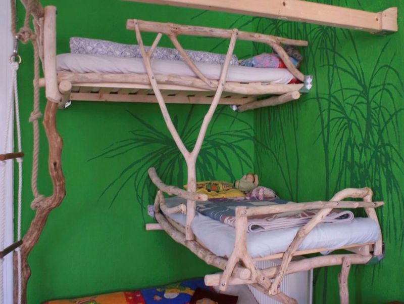Материал для кроватей можно с легкостью найти в ближайшем лесопарке. Стоит подключить к этому будущих хозяев - самих малышей.