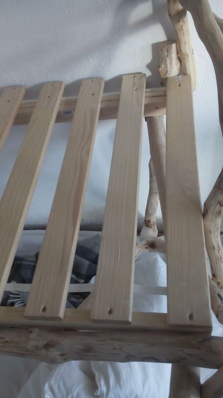 Не стоит жалеть материал, и если кровать шатается - добавить еще подпорок. Тут очень хорошо подойдут V-образные ветки. Только на вид они тонкие и хлипкие, на деле - дерево в естественном виде намного прочнее бруса распиленного, даже ветка диаметром в 10 см.