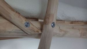 Готовые ветки нужно скрепить между собой, подходя к этой работе очень ответственно. Для крепежа выбираются саморезы различной длины с большими шляпками. Кровать делается для детей, которые не прочь попрыгать и полазать на ней, поэтому крепления должны быть надежными. Для точности можно высверливать отверстия для саморезов в половину его диаметра, а потом вкручивать их.