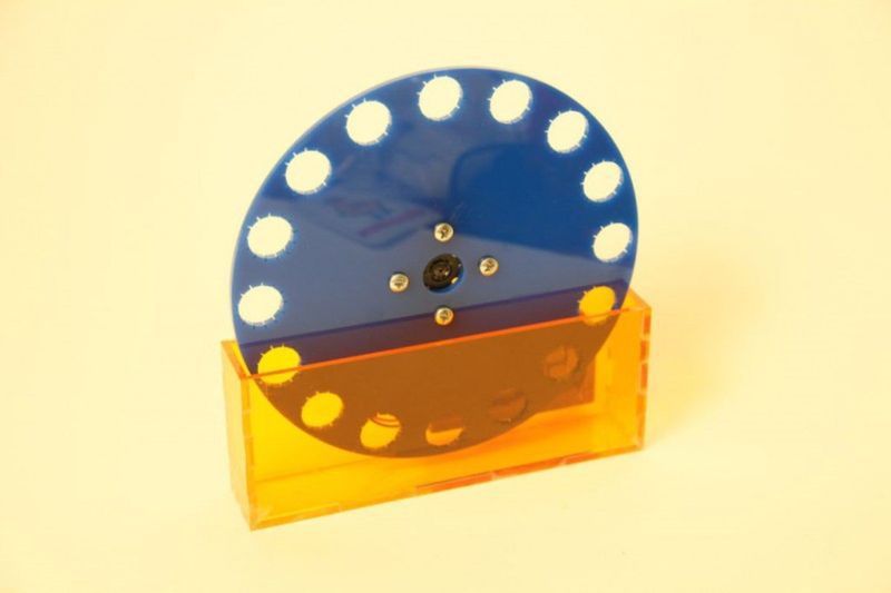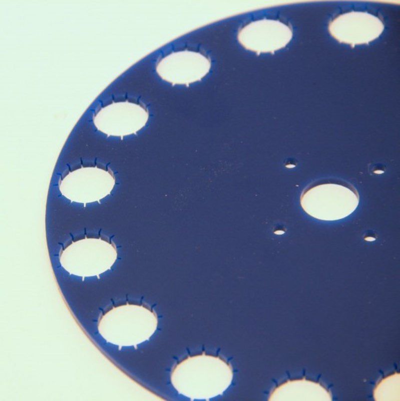 Из акрила также вырезают барабан, по периметру которого расположено 16 отверстий (в диаметре - 20 мм). Отверстие в середине диска позволит в дальнейшем установить мотор.