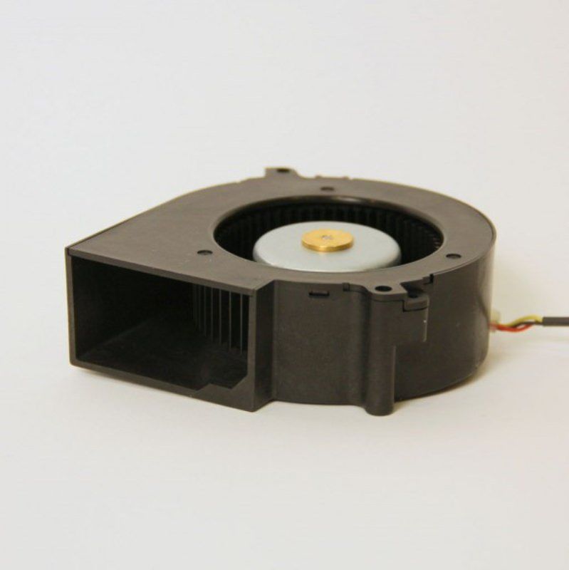 Теперь нужно вмонтировать вентилятор. Вентилятор возьмите центробежный. Он обладает воздушным потоком, работает от 12 В.