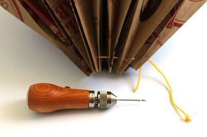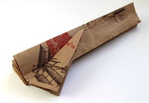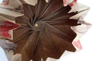 От пакета отрезают донышко и ручки. Далее разрезают пакет вдоль и разглаживают его. Лист собирают пополам в длину продолговатой стороны по четыре раза. Бумагу необходимо складывать как можно ровнее. Лист выходит в виде гармошки с 16 поверхностями. То же самое проделывают со вторым пакетом, однако складывают его всего 8 раз.