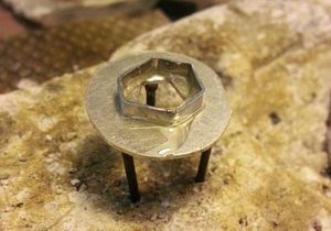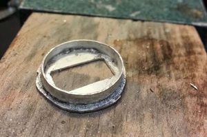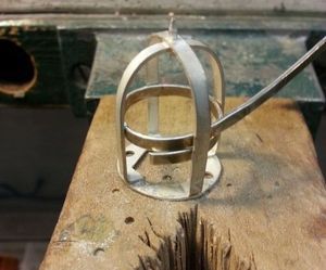 Следующий этап - установка кристалла на футляр. Для начала надо подумать о поддержке кристалла: чтобы он не выпал, нужно изготовить для него гнездо с ободком. Делается оно из того же стального листа.