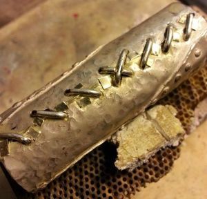 Изготовление кожуха футляра начинается с того, что все пластинки соединяются между собой и соединяются вместе с помощью заклепок из нержавеющей проволоки.