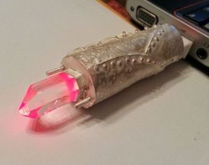 Уникальная самоделка совмещает в себе современный продукт и древнюю эстетику. Материалы, которые будут использоваться в работе, классические. Картридер имеет футляр из металла (нержавеющей стали, но можно использовать другие сплавы), оснащен светящимся кристаллом, который уведомляет о деятельности электронного устройства.