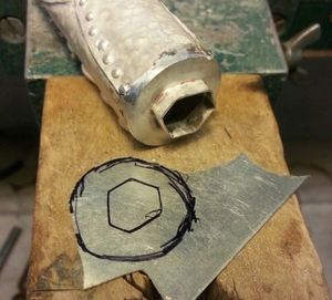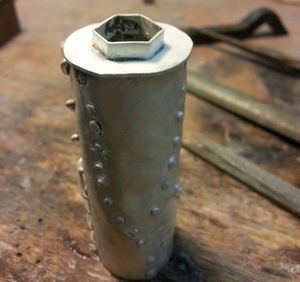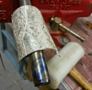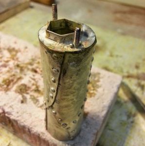 Кожуху футляра нужно придать цилиндрическую форму при помощи сердечника и молотка (мягкого). Для придания текстуры по поверхности нужно пройтись молотком.