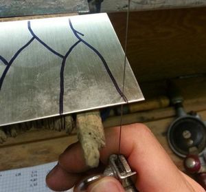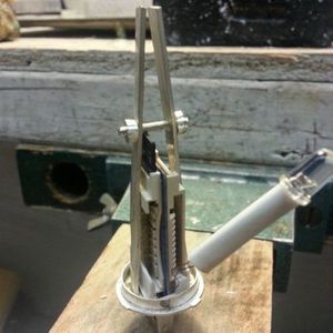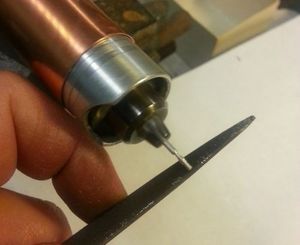 Проволока, из которой будут сделаны шипы, зажимаются в цанге. При помощи напильника формируется внешний вид шипов, потом готовые сегменты отрезаются от проволоки.