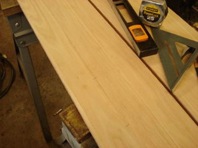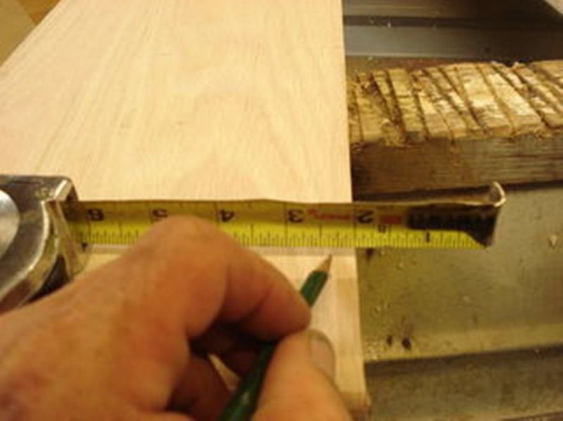 С помощью ручного фрезера края досок обрабатываются, чтобы быть немного скошенными. На верхней доске отмеряется линия под винты.