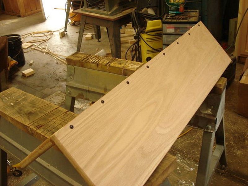 В доске тоже заранее высверливаются отверстия (1/4 дюйма сверло), куда крепятся консоли. Монтаж осуществляется с помощью винтов. Консоли крепятся к нижней доске.