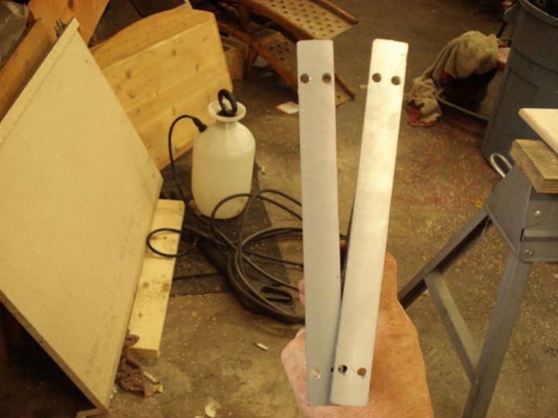 В каждом треугольнике высверливаются отверстия (7/32 сверло) - по два с каждого конца.
