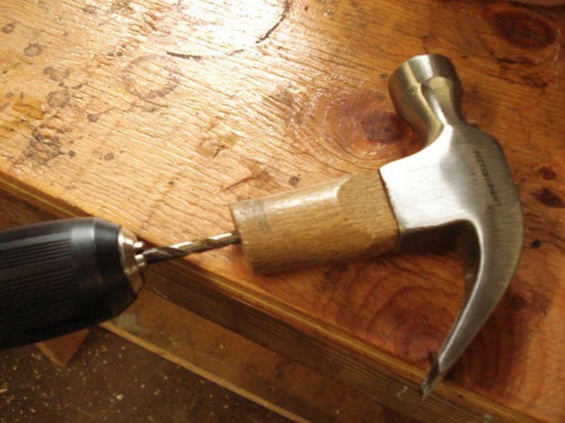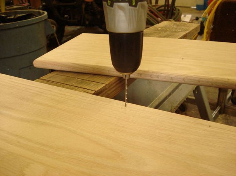 С помощью сверла вдоль всей линии высверливаются отверстия под винты (семь 1/8 дюймовых отверстия).