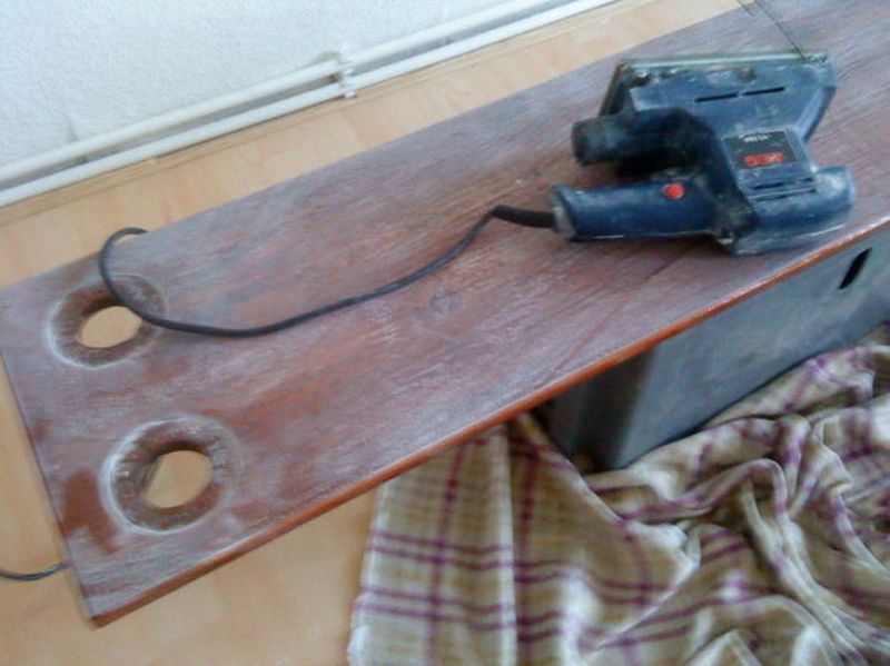 Доски для обувной подставки должны быть прочными и влагостойкими. Их покрывают лаком в несколько слоев с промежуточной шлифовкой. Можно первоначально покрасить доски и покрыть их лаком. Лак наносится с помощью распылителя.