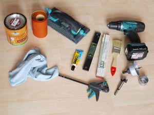 Стальные кольца крепятся с двух сторон к отверстиям в досках с помощью универсального клея. Он наносится по всей поверхности кольца. Чтобы дать клею схватиться, нужно некоторое время подержать его под нажимом. Можно использовать тяжелые книги, а можно - тиски.