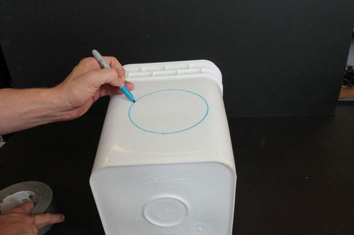 На стенках корзины очерчивается окружность. Можно использовать для этого любые объекты, что лежат под рукой.