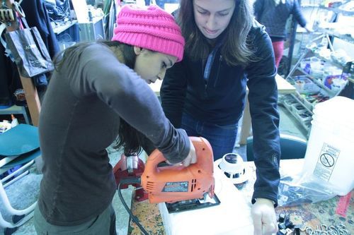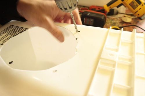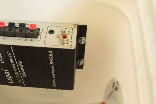 С помощью дрели отверстия высверливаются. Оба динамика нужно надежно закрепить в стенках корзины.![]()