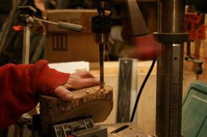 При помощи сверлильного станка вырежьте намеченные кружочки.