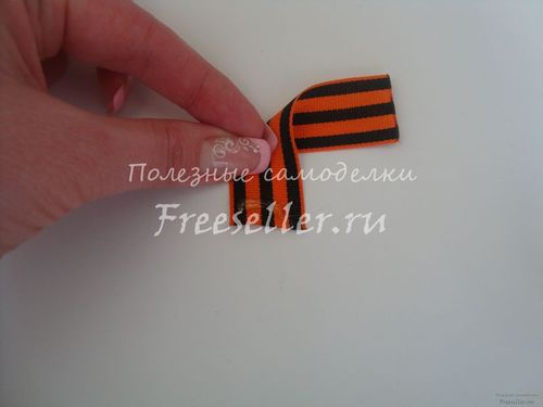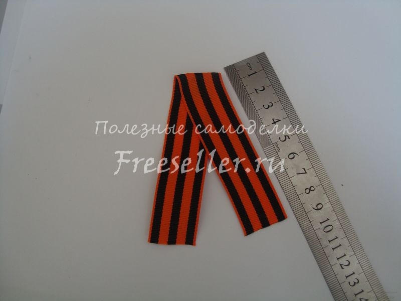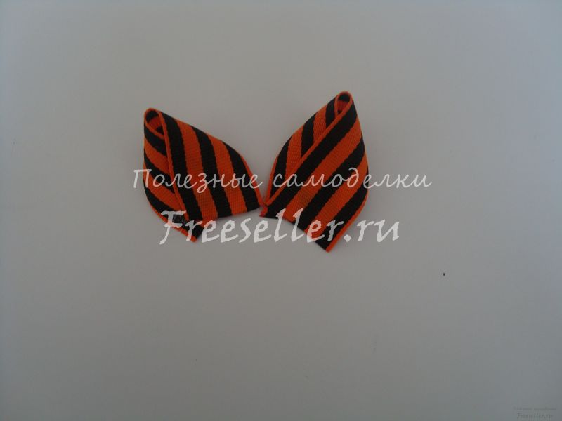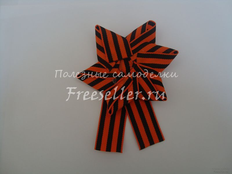 Полученные элементы наклейте на георгиевскую ленточку, чтобы образовался цветок.