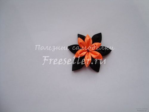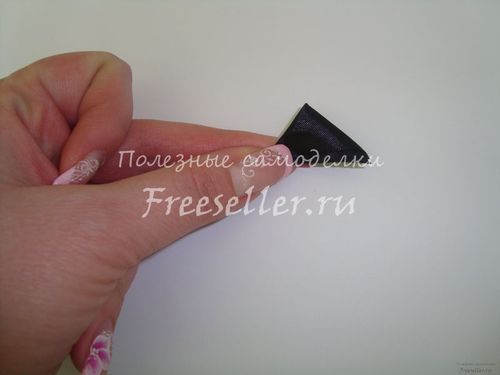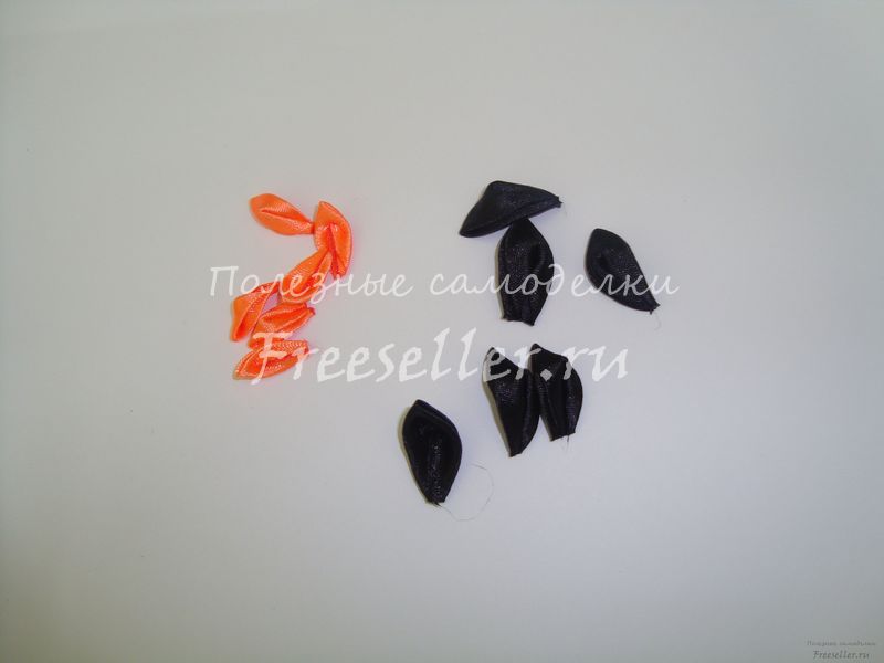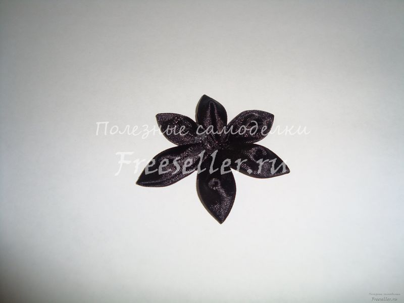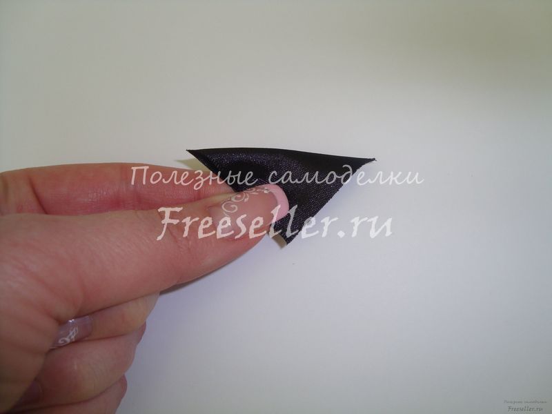 Из черного атласа вырежьте 6 квадратов размером 4 на 4 см. Каждый из них сверните пополам с угла к углу.