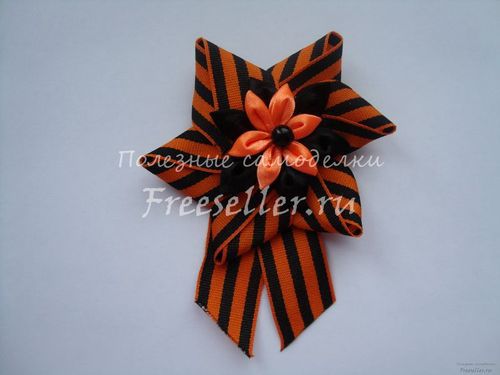 Переверните работа и наклейте булавку или основу для броши. Праздничная лента готова!