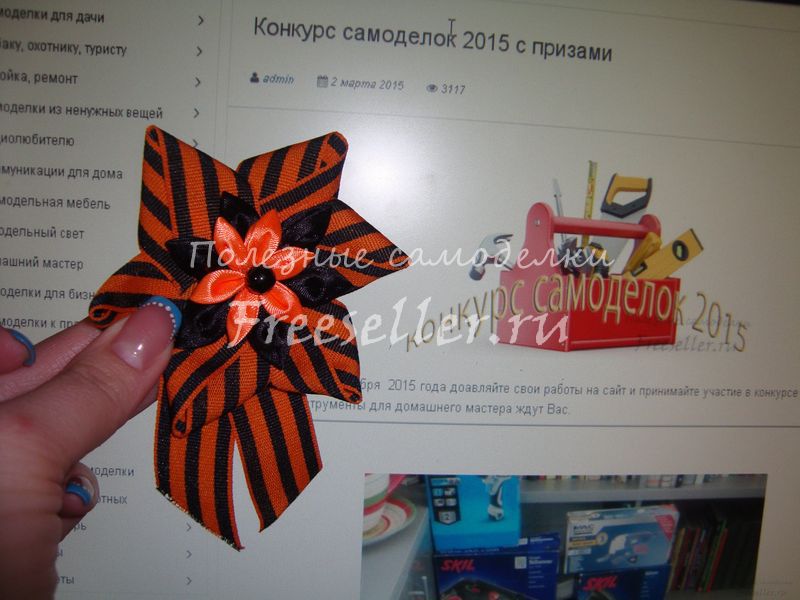 Приближается юбилей праздника памяти героям ВОВ. В этот день жители городов идут на парад с приколотыми георгиевскими лентами. Из этого описания вы узнаете, как на основе георгиевской ленты создать красивый цветок в честь Дня Победы, который украсит пиджак или платье.