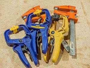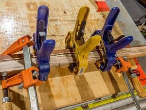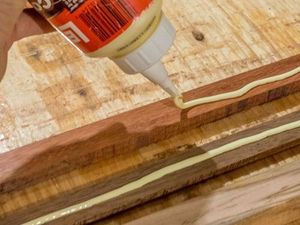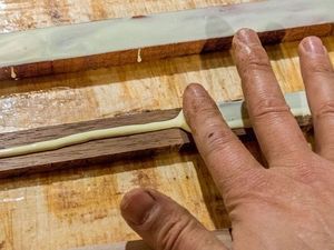В случае если будет использоваться не один кусок древесины, а несколько, заготовку нужно склеить между собой. Для этого подойдет столярный клей. Нужно равномерно и аккуратно распределить клей по всем элементам (фото 7). Затем с помощью зажимов соединить все элементы и дождаться достаточного схватывания. Если используется только один кусок древесины, то этот этап нужно пропустить.