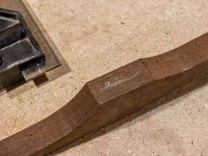 Основа готова. Теперь нужно нанести разметку на заготовку и вырезать ее по форме. В первую очередь нужно вырезать дерево там, где будет находиться лезвие будущего ножа. Проще всего для этих целей использовать рубанок. Размеры ножа: ширина - 4 см, толщина - 2 см, длина - 20см. Берем карандаш и размечаем нужные параметры на заготовке. Вырезать контур будет легче, если сделать шаблон.