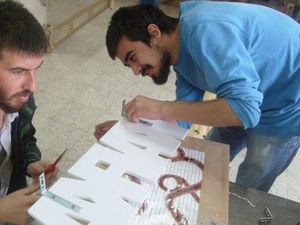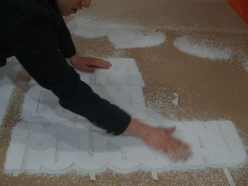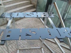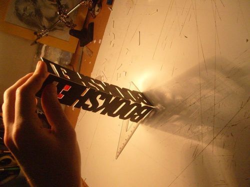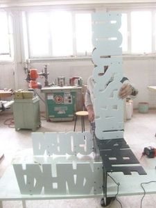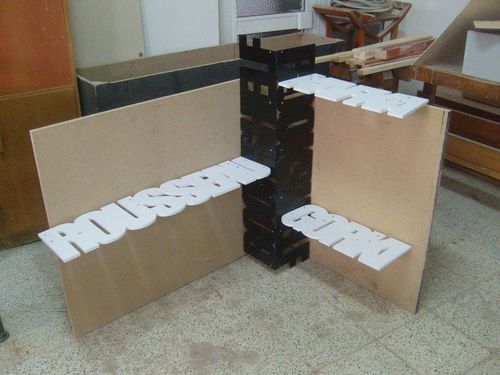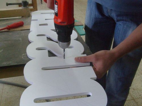 Полученные эскизы в увеличенном виде переносятся на лист «Форекса». Конечно, лучше использовать специальную машину для резки, но если доступа к ней не имеется, использовать обычную болгарку (когда речь идет о листе ПВХ).