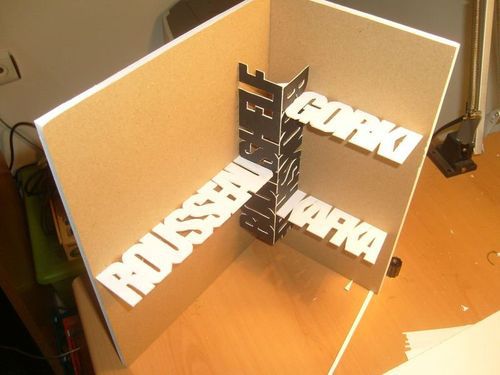 Полка будет состоять из угловой основы и нескольких полок, вырезанных в установленной форме. Они будут обозначать имена и фамилии писателей (по задумке, именно их произведения должны стоять на полках).