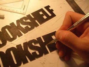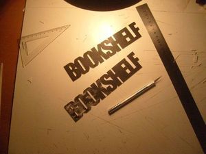 Первым шагом в работе над полкой будет создание макета: прорисовать все на бумаге, избрать шрифт, который будут прописаны имена. Это должен быть компактный шрифт с жирными символами - это уменьшит пространство между буквами и не позволит книгам упасть с полок.