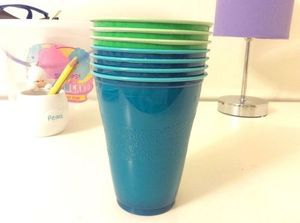 После этого, поместите туда же одноразовые стаканчики и зафиксируйте их клеем.