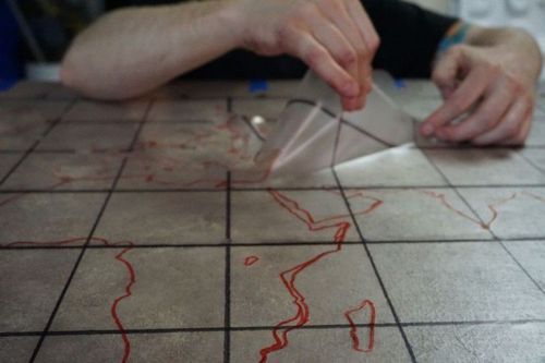 Как только краска, которую вы нанесли на основу, высохла, можно приклеивать прозрачную пленку. Чтобы она случайно не сместилась, по бокам закрепляем ее липкой лентой.