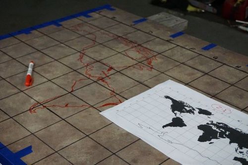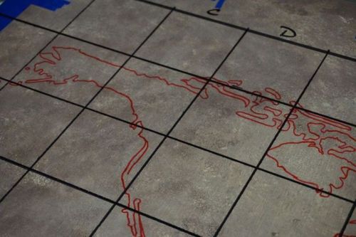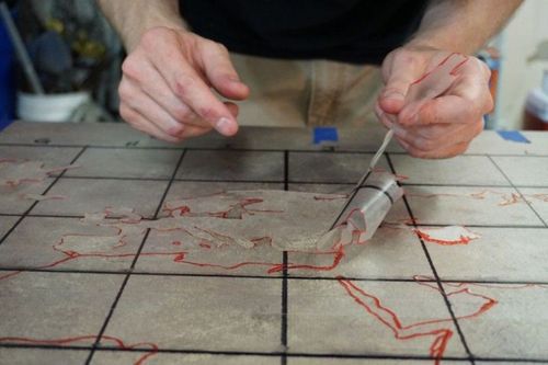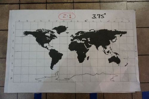 На пленку наносится сетка. Масштаб необходимо брать 16:8 (то есть по длине 16 квадратов, по ширине - 8). Смотрим на разлинованный рисунок и соответственно с ним переносим контуры материков на панно.