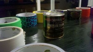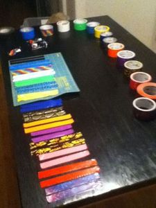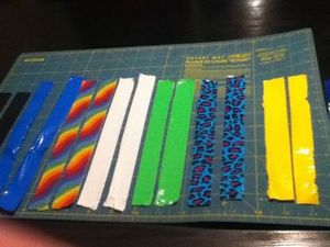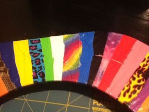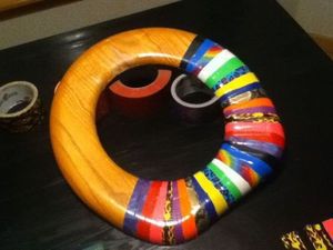 Для красивого рисунка потребуется лента хорошо гармонирующих цветов, минимум трех-четырех. Можно оклеивать сиденье в определенном порядке, можно - хаотично. В любом случае сначала лента раскладывается на столе в том порядке, в котором цвета будут следовать один за другим.