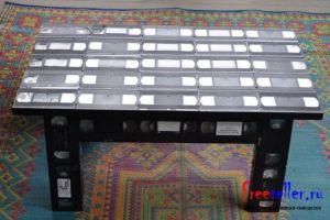 Стол готов! Сверху кладется прочное стекло. Углубления можно занять книгами, журналами, красиво разложить бутылки с вином.
