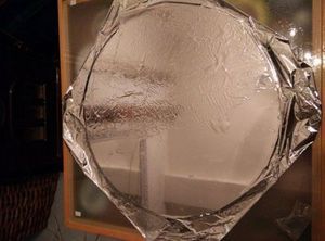 - на четыре части клейкой ленты прикрепляем окружность из органического стекла к предмету мебели;