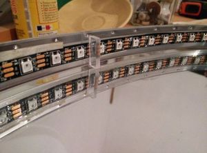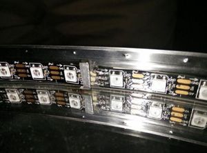 По бокам органического стекла прикрепляем сделанную из металла ленту, применяемая для производства окон. На скрытые стороны области прикрепляем клейкую двустороннюю ленту ну а сверху светодиодную полосу.