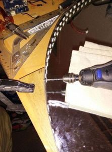 Как только окружность будет извлечена, делаем края гладкими и ровными, избавляемся от острых выступов, удаляем стружку, пыль и подходим к радостной операции, прикрепляем самоклейку.