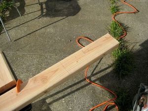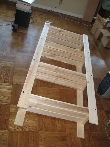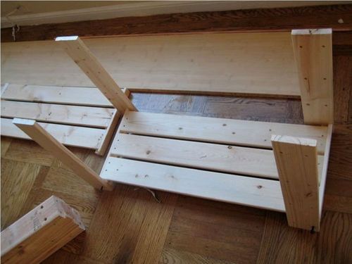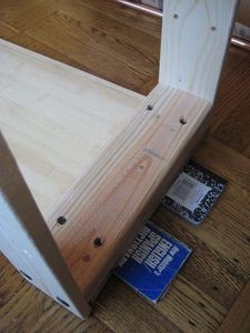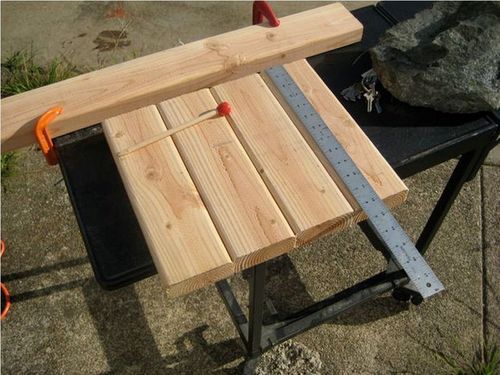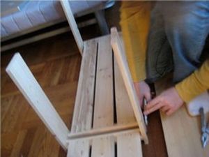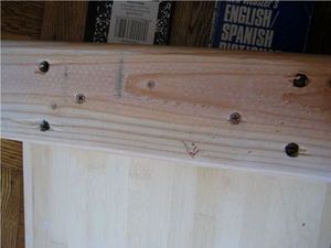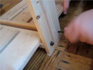 Далее с помощью болтов и крестовых шурупов бруски из доски крепятся на верхние отверстия доски.