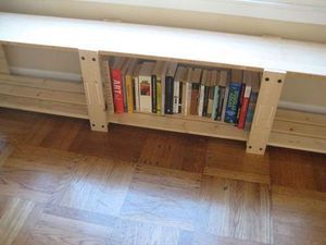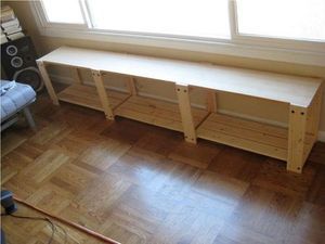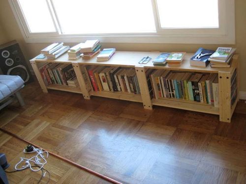 Обычный и очень простой в отделке стеллаж из магазина IKEA можно модернизировать и превратить в удобную лавку-полку. На ней приятно сидеть, но при этом стеллаж продолжает оставаться стеллажом - местом, где можно хранить книги и другие предметы.