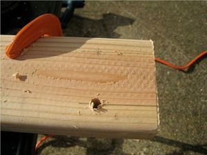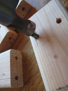 В полученных брусках нужно просверлить отверстия для закручивающихся болтов. В работе используется сверло 3/8 дюйма.