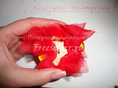 На пенопласт наклейте квадраты органзы и поместите основу в ведро.