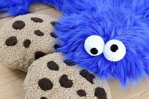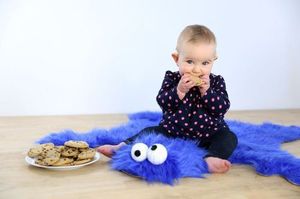 Многим знаком этот симпатичный синий монстр, который украшает некоторые пачки с печеньем. Он достаточно симпатичный и очень нравится детям. Чтобы сделать такой оригинальный ковер понадобится совсем немного времени. Честно говоря, понадобится точно не более часа, а вот удовольствие от подобного изделия будет гораздо дольше.